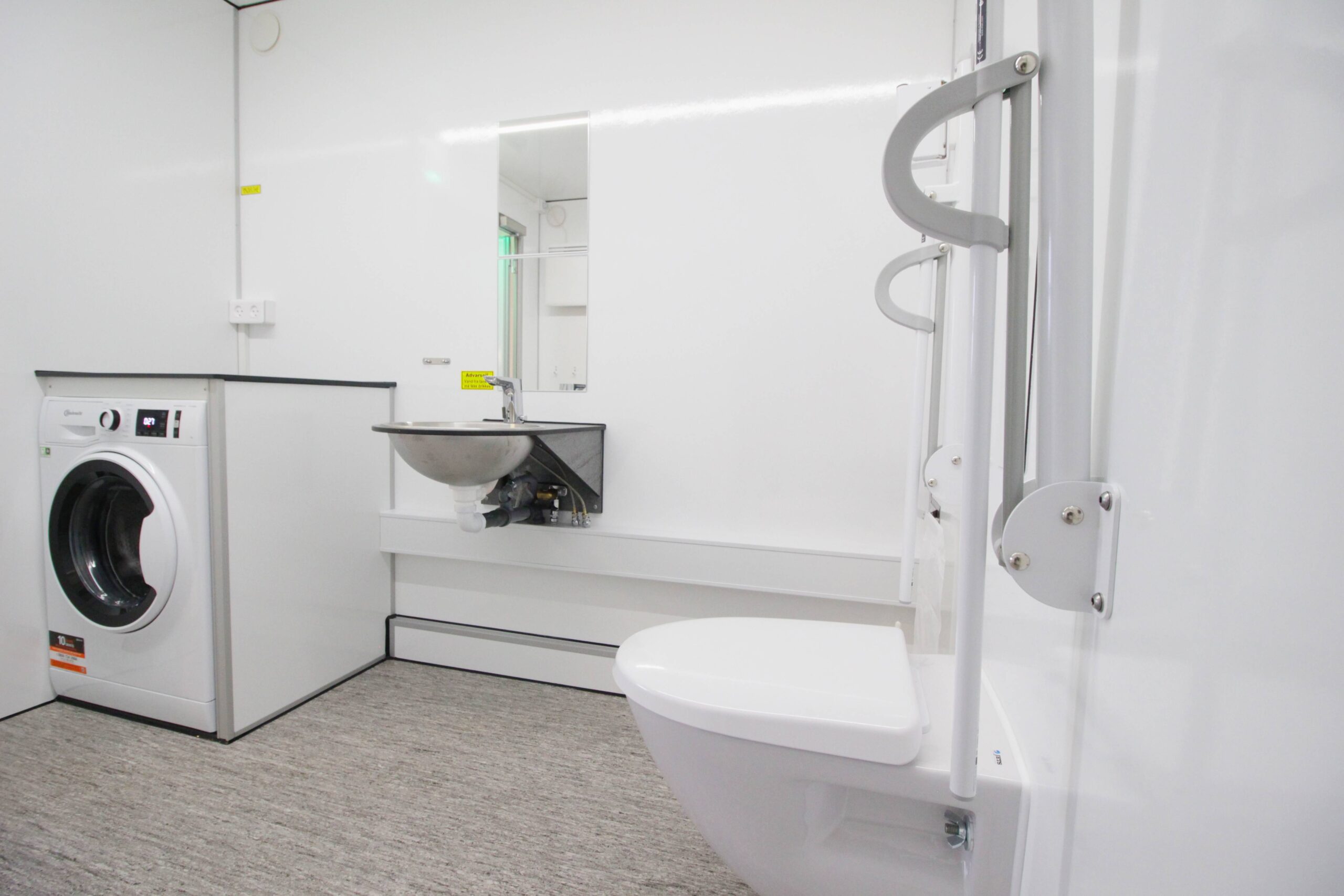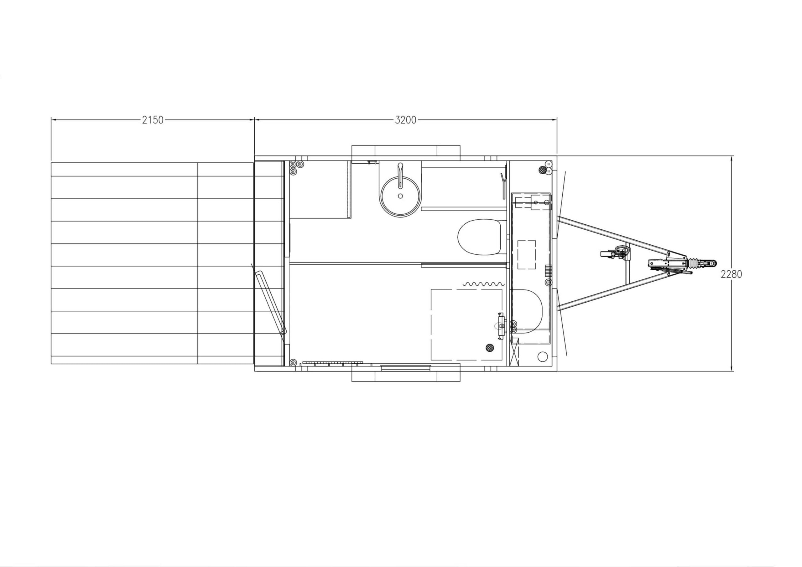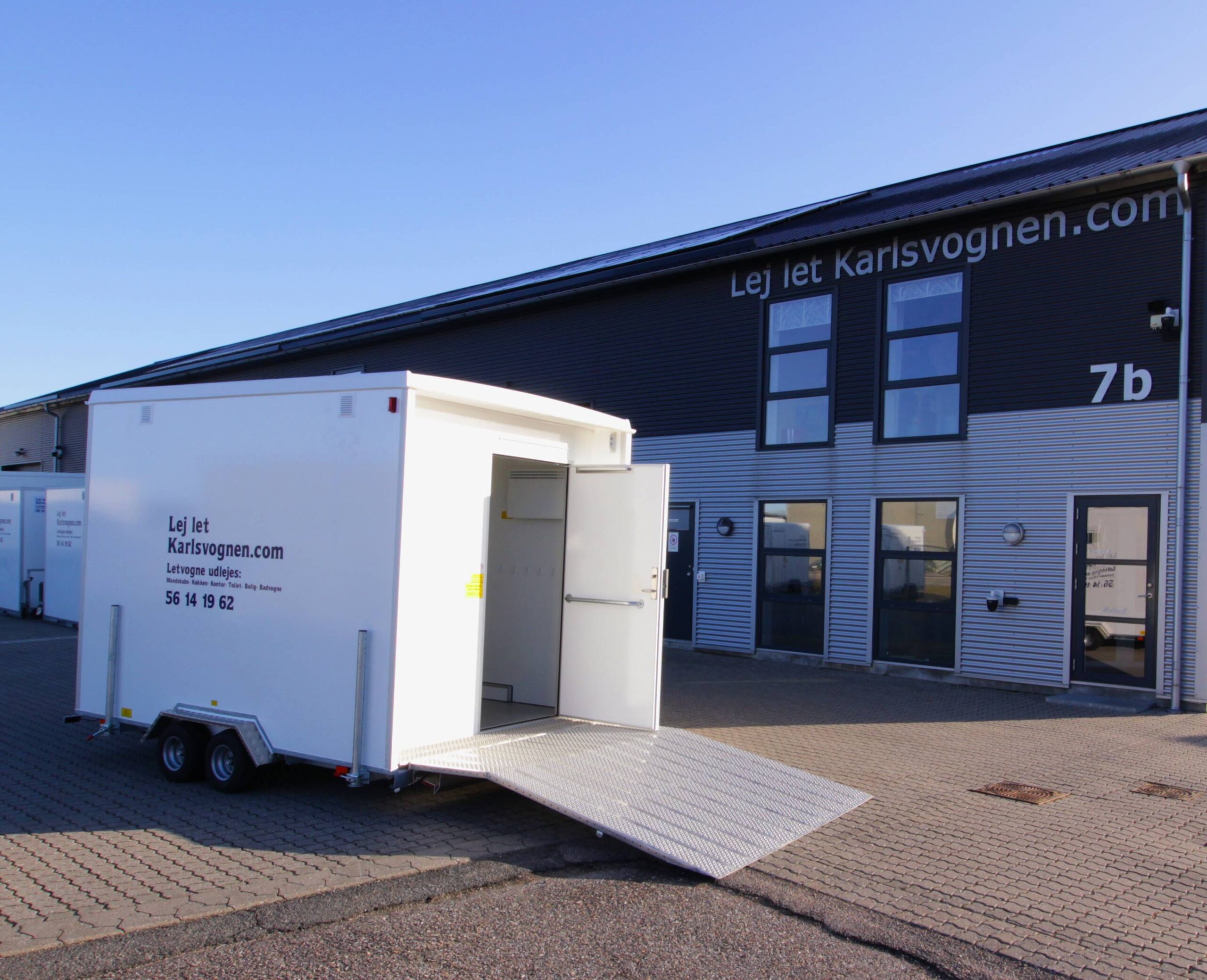 Denne vogn er handicapvenlig med rampe, god plads og indretning som et komplet badeværelse med alle nødvendige installationer.