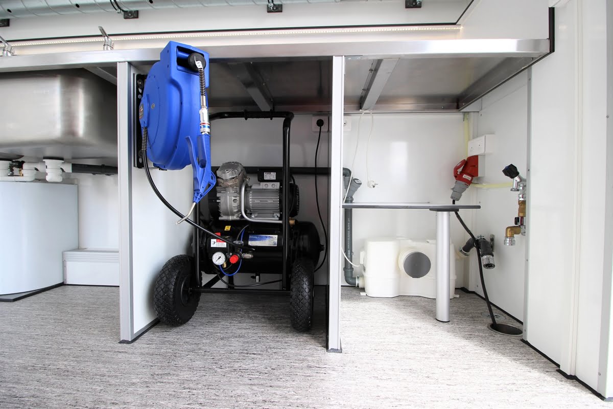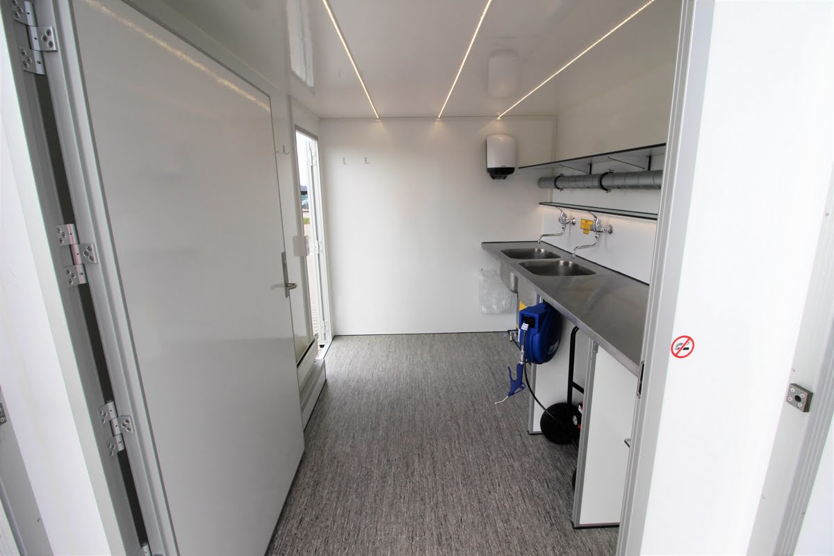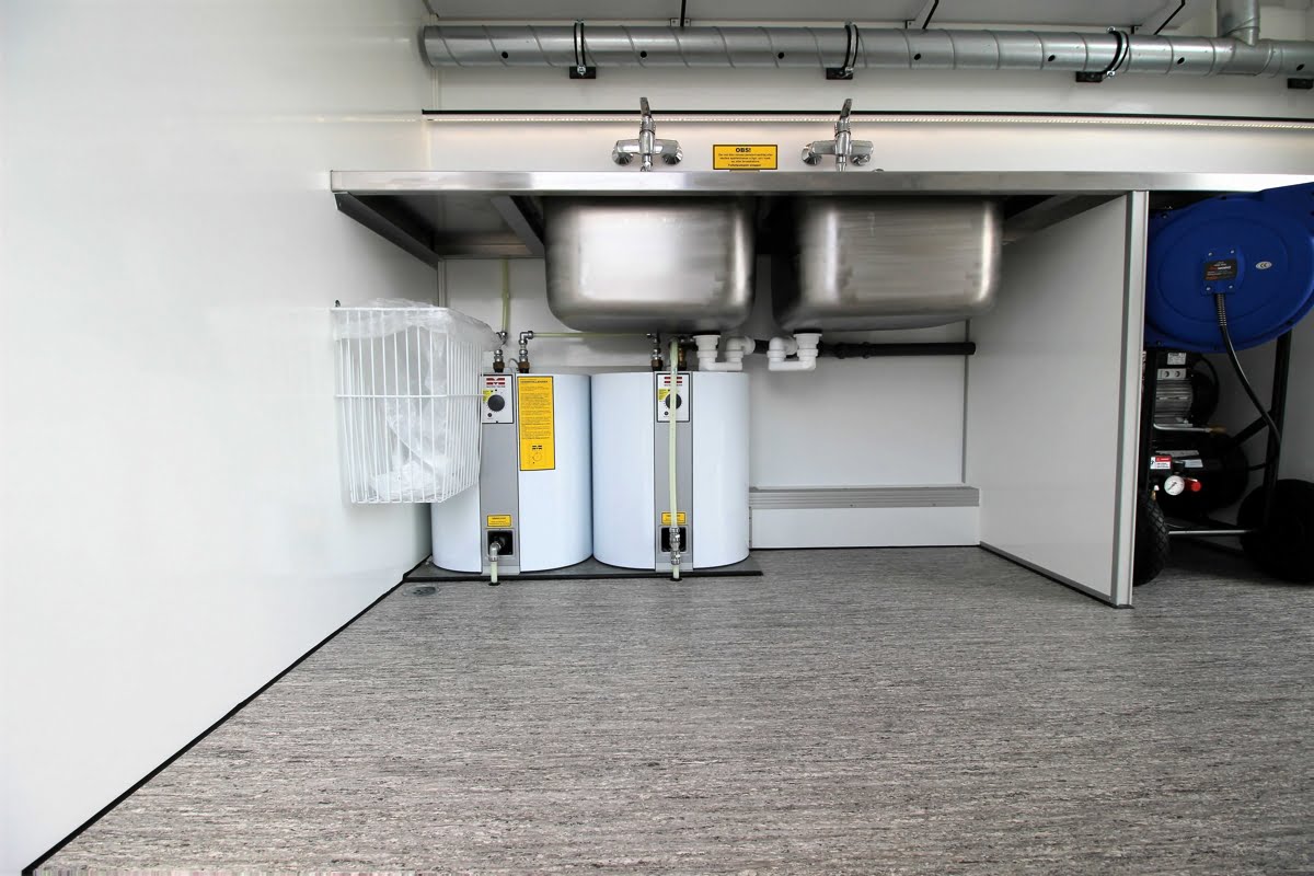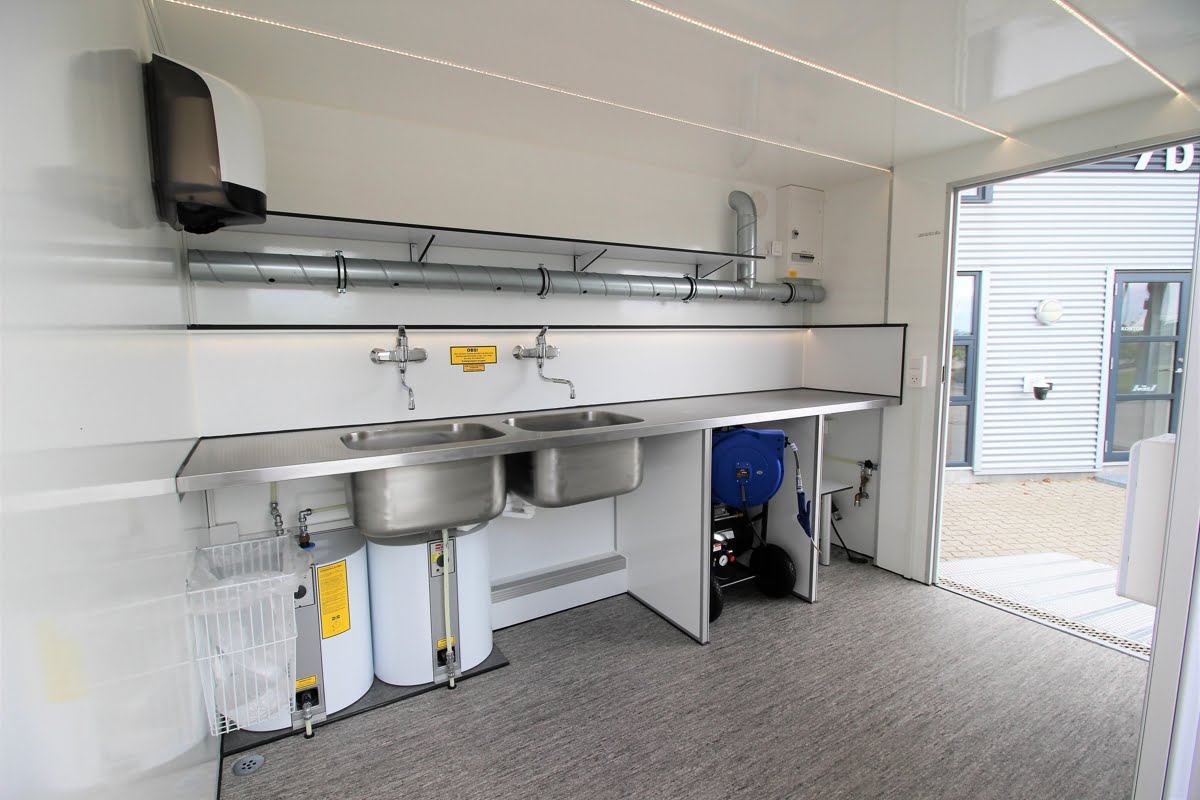 Vognen er indrettet med to store og dybe vaske med god udsugning og et trykluftsanlæg med 20 meter luftslange. For let adgang med indbo og løsøre er vognen udstyret med en ekstra bred åbning med tilgang via en skridsikker rampe.